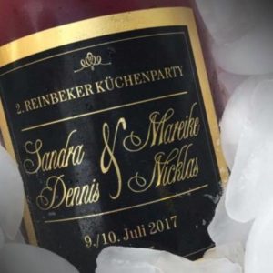 „Beim ersten Anblick jener Flaschen, die Ihr Unternehmen für unsere bevorstehende Silvesterfeier angefertigt hat, waren wir einfach nur sprachlos. Allein auf die Idee mit den zusätzlichen Kristallsteinchen auf den Flaschen wären wir selbst nie gekommen. Herzlichen Dank für diese schöne Gestaltungsvariante – gerne wieder!“